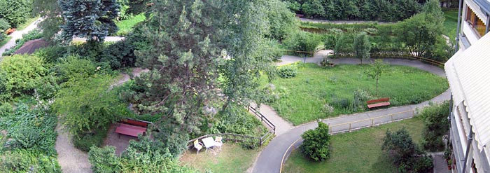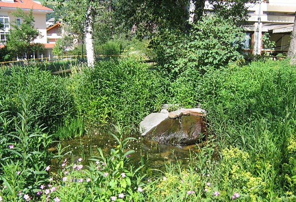 Il giardino si presta a piacevoli momenti all'aperto. Degno di nota è il parco, che con arbusti e fiori locali e di montagna, panchine, percorsi appositamente preparati e stagni costituisce uno spazio ricreativo invitante.