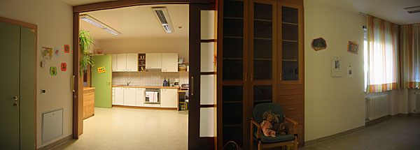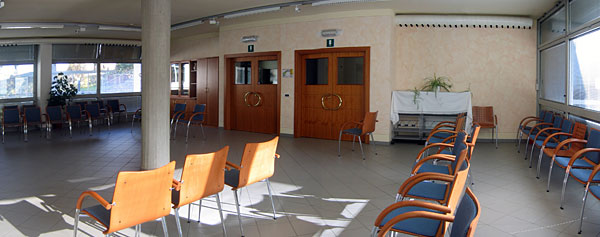 al primo piano ci sono altri locali per uso comune (la sala da pranzo, locali per il tempo libero, uffici amministrativi).